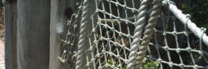 Description: Woven mesh or polyester cargo nets suspended from rope.